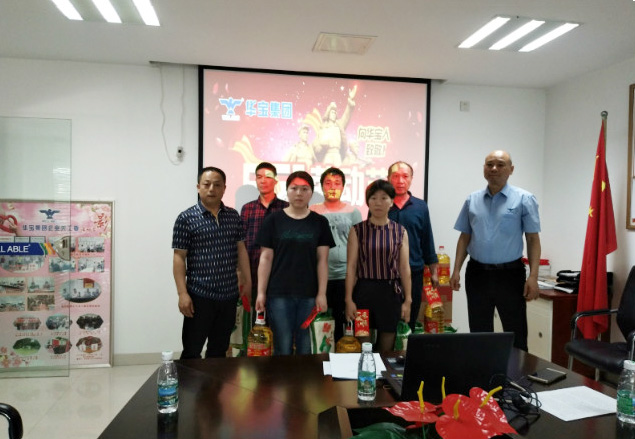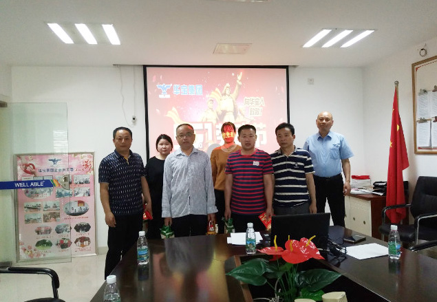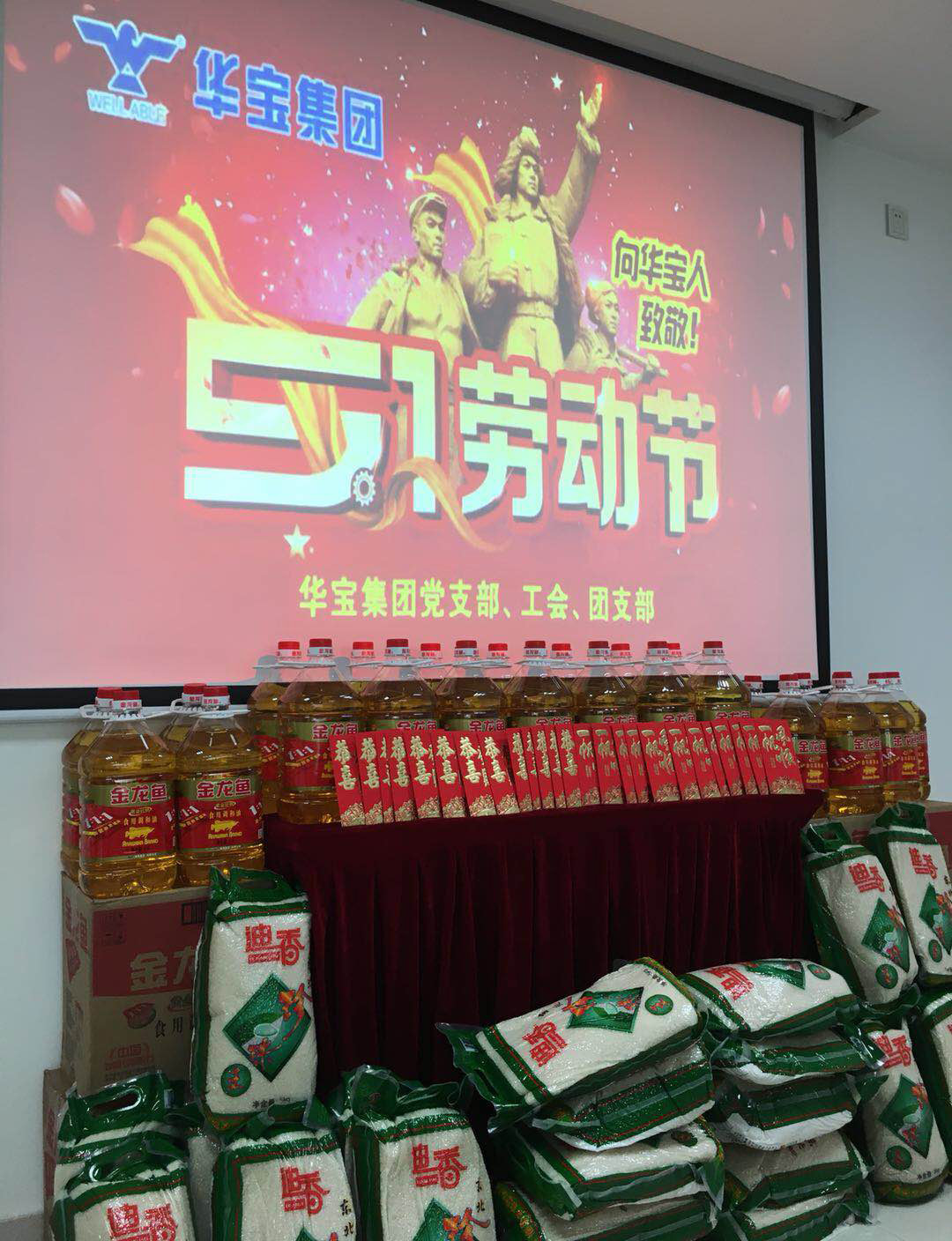 2018年4月28日,“五一”勞動節前夕,在華寶集團黨工團的指導下,華寶集團舉行了慶“五一”困難職工慰問大會,對各廠參會的職工發放慰問金和慰問品。集團工會主席師體偉和副主席陳云偉分別發表講話,對困難職工表示親切的關懷和慰問,職工代表發言表達對公司的感謝。