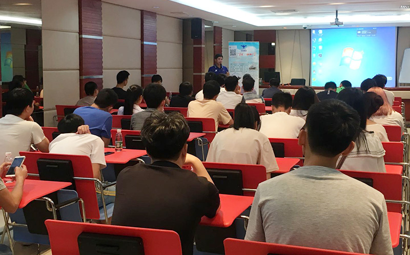 最后一站,學(xué)生們來到了集團(tuán)總部,石獅豪寶染織副總經(jīng)理吳灶生親自接待,在集團(tuán)多功能廳向?qū)W生介紹華寶集團(tuán)的基本情況,并向?qū)W生分享求職方向和經(jīng)驗(yàn),表達(dá)了公司人才儲(chǔ)備需求,現(xiàn)場(chǎng)反響熱烈。