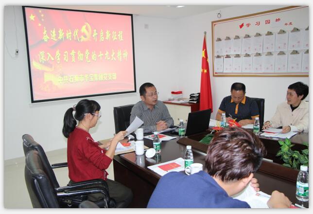 黨的十九大是一次不忘初心、牢記使命、高舉旗幟、團結奮進的歷史性盛會,極大地鼓舞了全黨全國人民為實現中華民族偉大復興的中國夢而奮斗的信心和力量,具有極其重大的歷史意義。當前和今后一個時期,華寶集團黨支部的首要政治任務,就是認真學習宣傳和全面貫徹落實黨的十九大精神,認真學習貫徹習近平新時代中國特色社會主義思想,以新氣象、新作為開啟決勝全面建成小康社會、全面建設社會主義現代化國家的新征程!