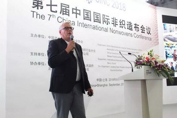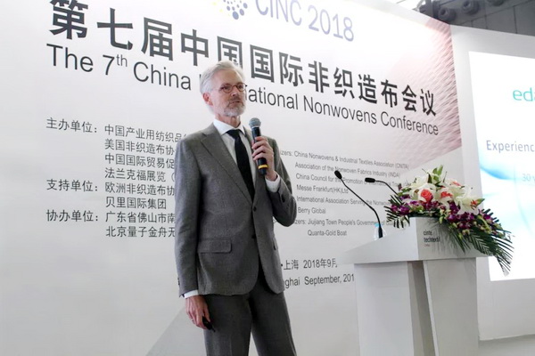 法蘭克福展覽有限公司產(chǎn)業(yè)用紡織品及紡織加工品牌總監(jiān)Michael. Janecke致辭時表示,CINTE一直致力于為全球產(chǎn)業(yè)用紡織品企業(yè)搭建公開公平公正的交流平臺,本屆展會,海外展商的數(shù)量達到歷史新高,他們也帶來了領先的創(chuàng)新產(chǎn)品,可以與國內(nèi)產(chǎn)業(yè)用紡織品企業(yè)進行更全面的貿(mào)易交流。盡管當前國際形勢比較復雜,但非織造材料依舊保持了良好的發(fā)展前景,市場需求不斷提升,市場驅(qū)動后勁十足。 Michael Janecke表示:“目前,70%功能性非織造材料的功能尚待完全開發(fā),雖然說網(wǎng)絡媒體日漸發(fā)達,但我們依舊需要面對面的交流,去碰撞出更多的合作伙伴和創(chuàng)新想法,今天召開的第七屆中國國際非織造布會議將從市場趨勢和產(chǎn)品應用兩個方面探討行業(yè)發(fā)展,希望對于企業(yè)布局未來發(fā)展提供良好幫助。”